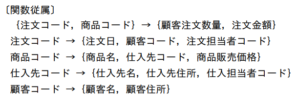 ある属性Aの値が決まれば、属性Bの値も一意に決まるという関係です。たとえば「社員ID→社員名」があれば、IDが分かれば名前も分かります。